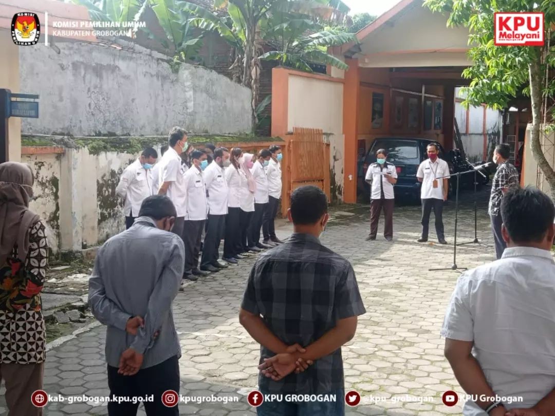 Hari senin ini, pukul 08.30 WIB, seperti biasanya, Skretariat KPU kabupaten Grobogan menggelar rapat rutin tiap hari senin. Dipimpin oleh Sekretaris KPU Kabupaten Grobogan Yudhaviska AS, SE, rapat ini berjalan lancar. Rapat rutin ini diadakan untuk mengevaluasi kegiatan yang telah dilaksanakan pada minggu yang lalu, dan merencanakan kegiatan yang akan dilaksanakan pada minggu yang akan datang.