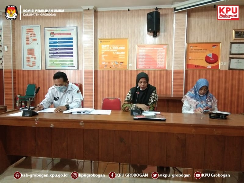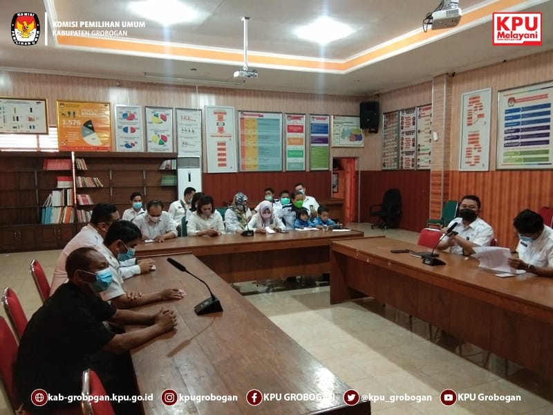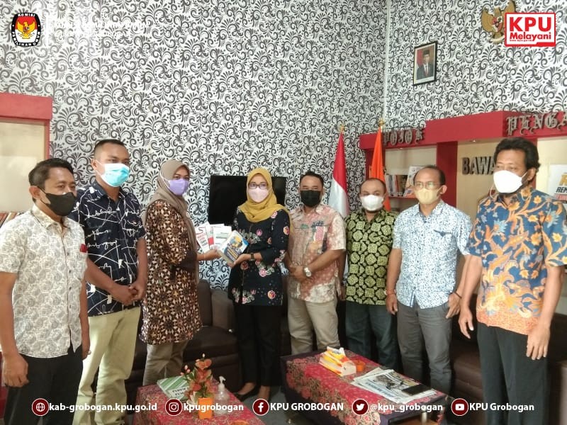 Purwodadi - Tepat Pukul 10.00 WIB KPU Kabupaten Grobogan bertandang ke Bawaslu Kabupaten Grobogan dalam rangka pelaksanaan kegiatan SamSu Kamisan. SamSu Kamisan adalah salah satu upaya sosialisasi KPU Kabupaten Grobogan untuk meningkatkan angka partisipasi pemilih, dan membuka wacana masyarakat tentang arti penting Pemilu dan Pemilihan. Sambutan hangat diberikan oleh Bawaslu Kabupaten Grobogan yang digawangi oleh Fitria Nita Witanti. Ditemani komisioner Bawaslu Kabupaten Grobogan lainnya beliau mengucapkan selamat datang, dan menyambut baik kehadiran KPU Kabupaten Grobogan. Sebagai sesama penyelenggara Pemilu, sepak terjang Bawaslu Kabupaten Grobogan juga diapresiasi oleh KPU Kabupaten Grobogan. KPU Kabupaten Grobogan juga mengucapkan terima kasih, atas kerja sama yang telah terjalin selama ini selama penyelenggaraan Pemilu dan Pemilihan yang telah lalu. Suwiknyo berharap agar di masa yang akan datang, kerjasama yang telah terjalin baik ini dapat ditingkatkan. Karena menurut beliau jika KPU Kabupaten Grobogan dan Bawaslu Kabupaten Grobogan dapat menjalin kerjasama yang baik, maka iklim politik di Kabupaten Grobogan akan menjadi semakin sejuk. Di akhir pertemuan KPU Kabupaten Grobogan menyerahkan buku hasil karya komisioner KPU Kabupaten Grobogan sebagai cindera mata. By : MM