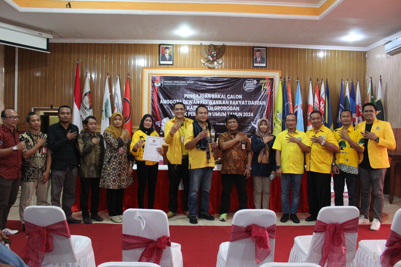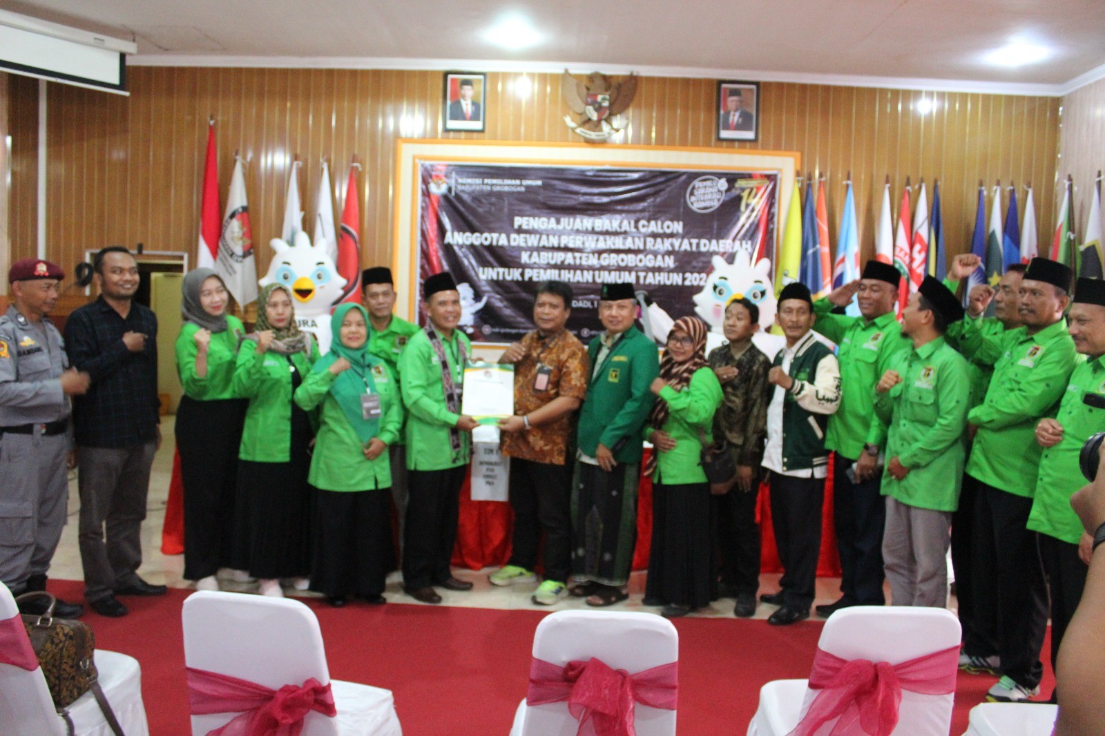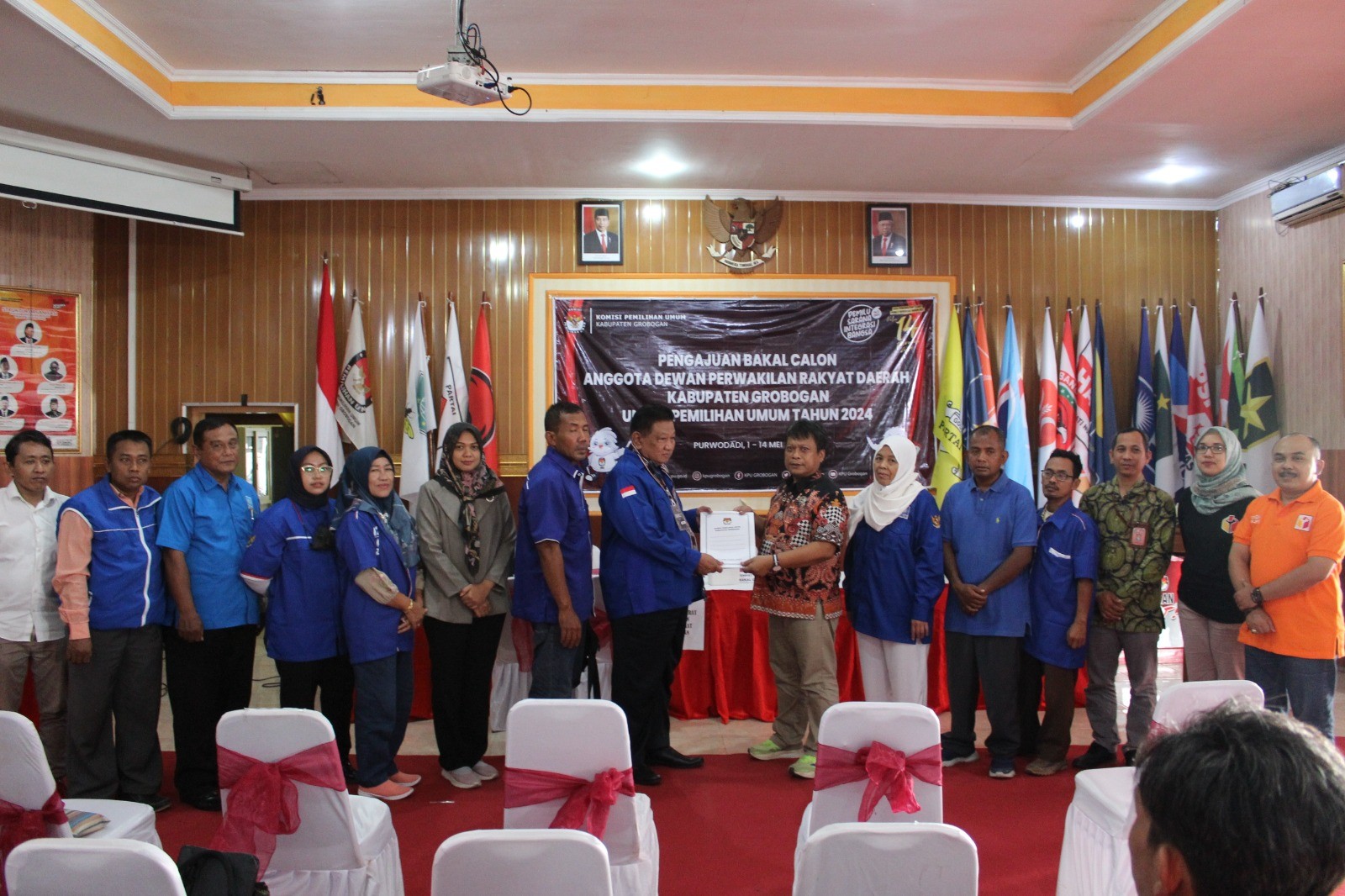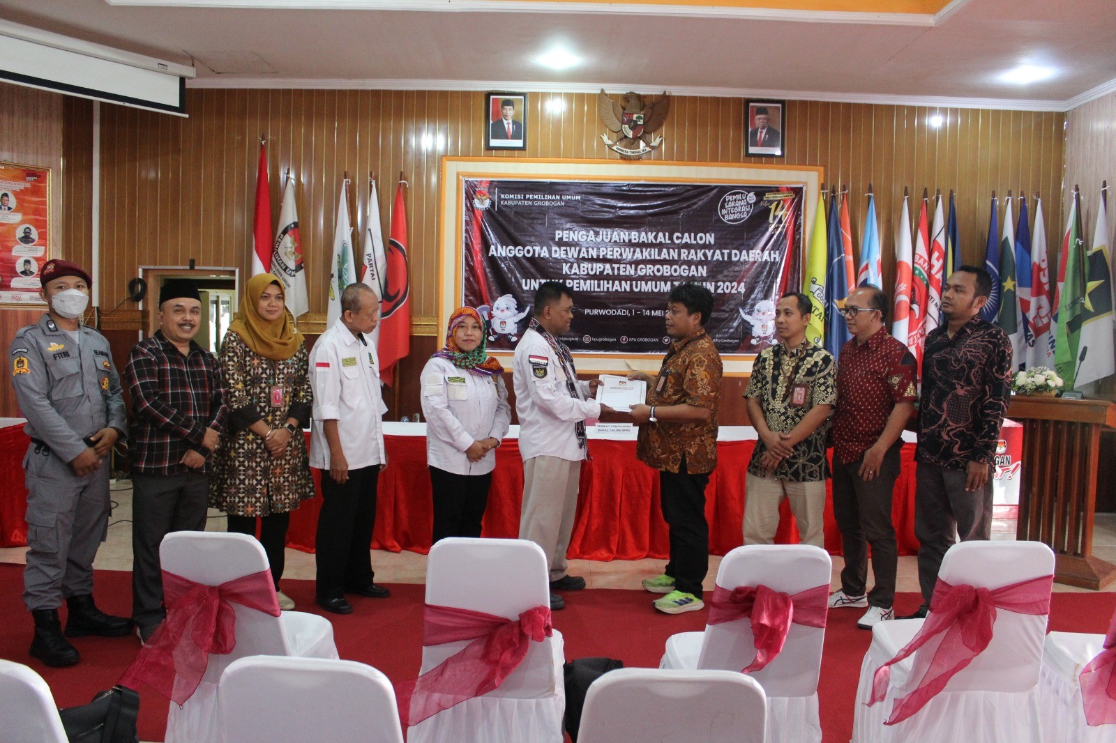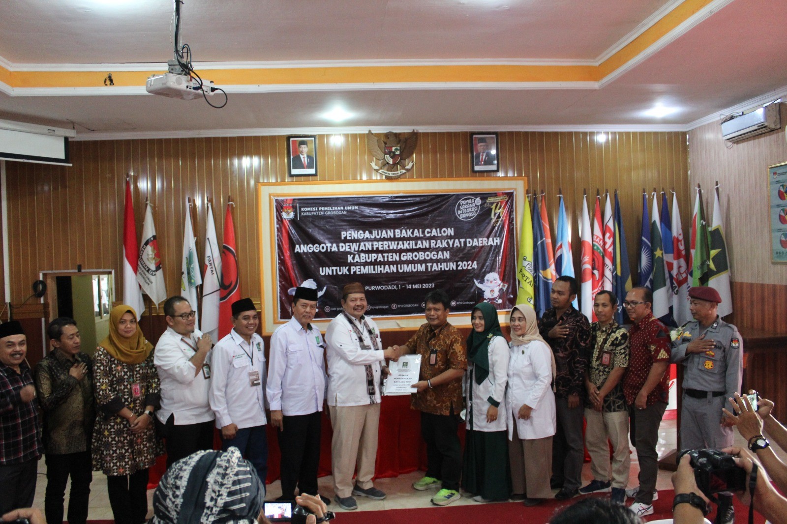 PURWODADI - Sabtu, 13 Mei 2023 pukul 13.30 WIB, Partai Bulan Bintang (PBB) datang ke kantor KPU Kabupaten Grobogan dengan membawa berkas pengajuan bakal calon Anggota DPRD Kabupaten yang sebelumnya telah diunggah di Sistem Informasi Pencalonan (SILON). Hadir pada saat itu adalah Ketua Partai PBB tingkat Kabupaten Gorobgan dan Petugas Penghubung (LO). Kehadiran Partai PBB diterima dengan hangat oleh Ketua KPU Kabupaten Grobogan. Setelah menyematkan cindera mata, Agung Sutopo, secara resmi menyambut rombongan Partai PBB. Dalam sambutannya Agung mengucapkan apresiasi kepada Partai PBB karena telah berhasil menyelesaikan tahapan pendaftaran pengajuan bakal calon Anggota DPRD Kabupaten. Agung juga berharap semoga tahapan ini bisa berjalan lancar hingga penetapan DCT. Sementara Puji Daryana berharap, dengan proses pengajuan bakal calon Anggota DPRD ini Partai PBB dapat turut serta meramaikan pesta demokrasi yang akan digelar tahun 2024 mendatang, tak lupa Puji Daryana mengucapkan terimakasih kepada KPU Kabupaten Grobogan atas penyambutan yang dilakukan. Setelah dokumen pengajuan bakal calon Anggota DPRD Kabupaten Grobogan diterima oleh Ketua KPU Kabupaten Grobogan, untuk kemudian dilakukan pemeriksaan, dan dinyatakan lengkap. Berita Acara dan Tanda Terima Penerimaan Berkas Pengajuan diserahkan oleh Agung Sutopo, kepada ketua Partai PBB tingkat Kabupaten Grobogan.