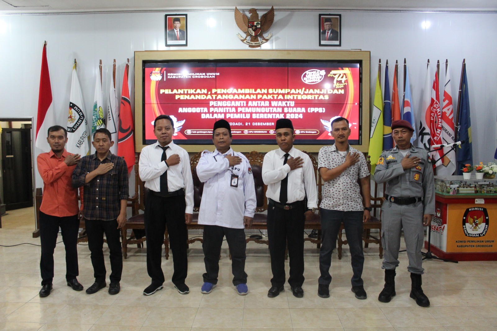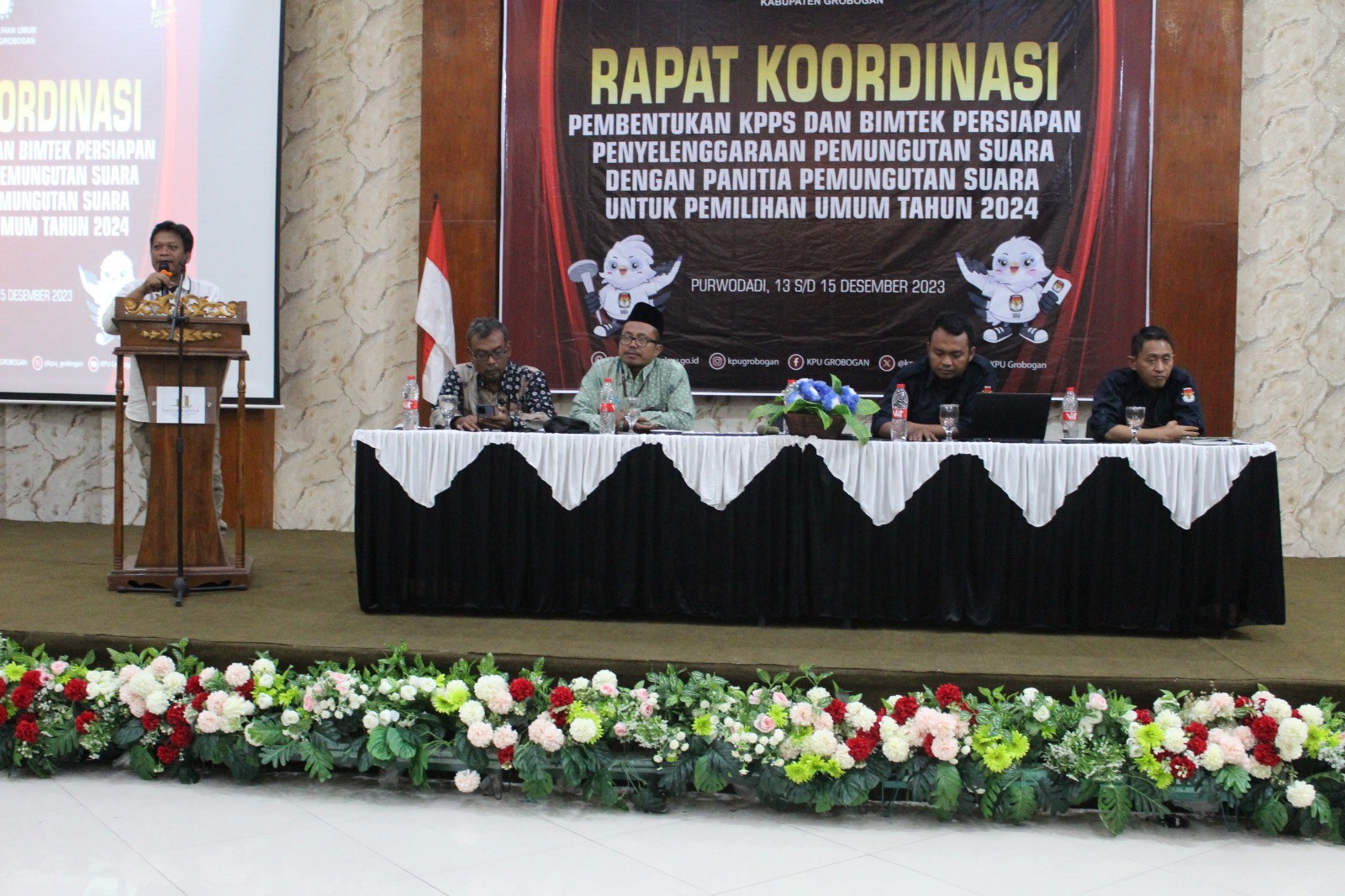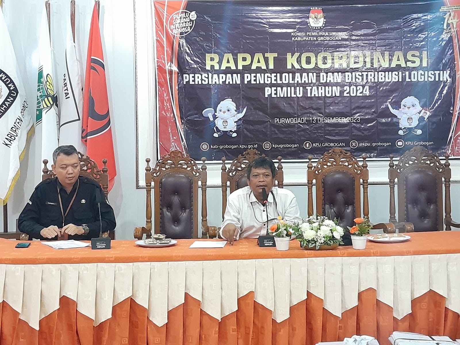 PURWODADI - Sabtu (16/12/2023) KPU Kabupaten Grobogan mengadakan Focus Group Discussion (FGD) Persiapan Pengelolaan dan Distribusi Logistik Pemilu Tahun 2024. Hadir sebagai narasumber perwakilan dari Polres Grobogan dan Kodim 0717 Grobogan. Acara yang bertempat di Hotel 21 Purwodadi ini diikuti oleh OPD terkait, Bawaslu Kabupaten Grobogan, Ketua Panitia Pemilihan Kecamatan (PPK) beserta Anggota PPK Koordinator Logistik se Kabupaten Grobogan.