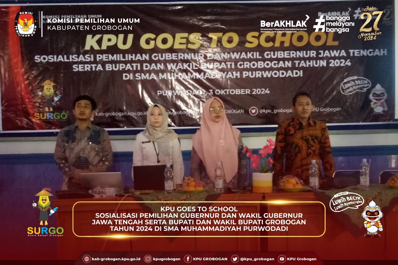 Acara diawali dengan sambutan dari Ketua KPU Kabupaten Grobogan yang diwakili oleh Anggota KPU Kabupaten Grobogan Divisi Hukum dan Pengawasan, Bapak Muh.Syaifudin, S.Pd.I, M.Pd.,