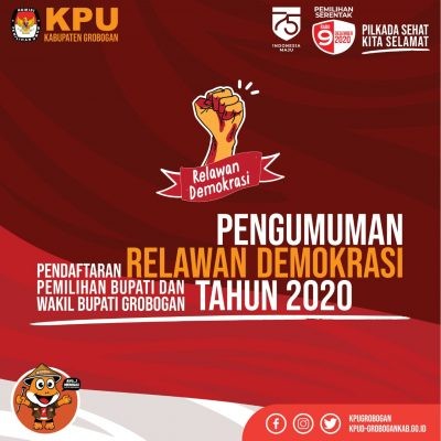GROBOGAN - Komisi Pemilihan Umum Grobogan membuka kembali pendaftaran relawan demokrasi dalam rangka Pemilihan Bupati dan Wakil Bupati Grobogan 2020. Pendaftaran relasi ini dibuka mulai 22-26 Agustus 2020. Hal itu dibenarkan komisioner KPU Grobogan, Ngatiman. Pria yang menjabat bagian Divisi Sosialisasi Pendidikan Pemilih, Partisipasi Masyarakat dan SDM ini menjelaskan, relawan demokrasi 2020 ini merupakan gerakan sosial untuk meningkatkan angka partisipasi pemilih pada Pilbup Grobogan 2020 ini. "Dengan harapan para relawan demokrasi ini dapat menjadi pelopor di basisnya masing-masing dalam upaya pemenuhan kualitas dan tingkat partisipasi pemilih dalam Pilbup Grobogan tahun 2020," jelas Ngatiman. Ada delapan basis dalam pembentukan relawan demokrasi ini, yaitu basis keluarga, basis keagamaan, basis pemula, basis pemilih muda, basis perempuan, basis komunitas, basis warganet dan basis penyandang disabilitas. Bagi yang berminat, Ngatiman menjelaskan prosedur pendaftaran Relawan Demokrasi 2020 ini. "Pendaftaran bisa dilaksanakan pada 22-26 Agustus 2020 dengan mengumpulkan persyaratan. Kemudian, pada 27 Agustus 2020 dilakukan pengumuman bagi yang lolos pada tahap verifikasi berkas." "Tanggal 28-29 Agustus 2020 tahap wawancara. Bagi yang lolos dalam tahap ini, pada 30 Agustus 2020, namanya akan diumumkan," jelas ayah dua anak ini. Ia juga menjelaskan, jumlah relawan demokrasi 2020 ini disiapkan 38 personel. Dimana, masing-masing basis akan dioptimalkan dengan 4-5 personel sesuai dengan kebutuhan masing-masing basis. Sesuai Target Dalam mekanisme kerja Relawan Demokrasi 2020, para relawan diharapkan dapat meningkatkan angka partisipasi pemilih sesuai dengan target RPJM dan KPU RI. Ngatiman menjelaskan, jika mengaca pada kinerja para relawan dalam Pemilu Legislatif 2019 lalu, tingkat partisipasi pemilih di Kabupaten Grobogan 78,7 persen dari target RPJM dan KPU RI 77,5 persen. "Kami berharap pada Pilbup Grobogan 2020 ini peran serta para relawan demokrasi bisa membantu mencapai tingkat partisipasi pemilih lebih dari target seperti tahun sebelumnya," tambahnya. Untuk persyaratan bagi yang berminat dapat dilihat di laman resmi KPU Grobogan di kpud-grobogankab.go.id atau akun resmi FB, twitter dan instagram KPU Grobogan. By : MM