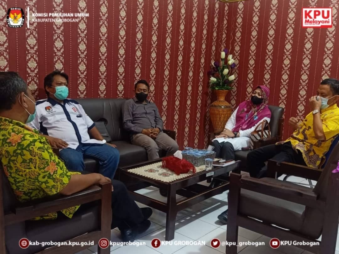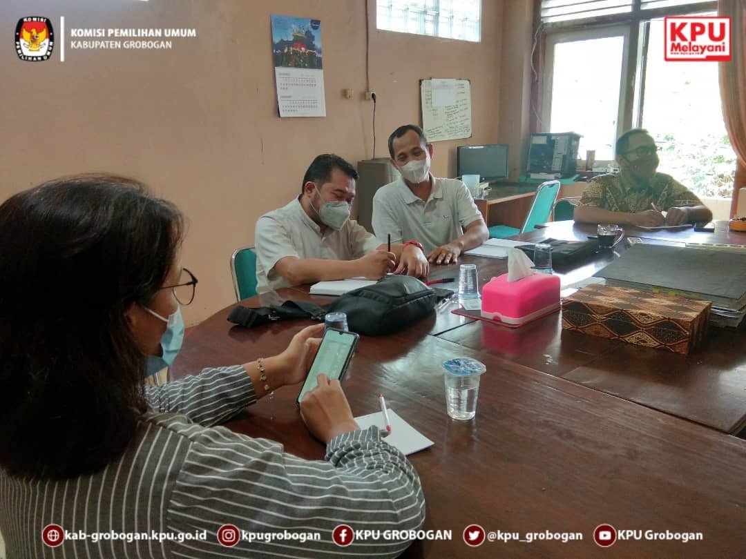 Hari ini, seperti Kamis sebelumnya, melaksanakan agenda kegiatan Sambang Sedulur Kamisan (SamSu Kamisan). Acara ini merupakan kegiatan rutin yang diselenggarakan oleh KPU Kabupaten Grobogan dalam rangka persiapan Pemilu dan Pemilihan Serentak 2024 dengan bentuk sosialisasi dan silaturahmi ke stakeholder yang berada di wilayah Kabupaten Grobogan. Target SamSu Kamisan kali ini adalah Partai Bulan Bintang. Mengambil tempat di Dusun Gebangan RT 1 RW 3 Desa Putat Kecamatan Purwodadi, acara berlangsung santai. Berkesempatan menerima kunjungan KPU Kabupaten Grobogan adalah Ketua DPC Partai Bulan Bintang Bapak Puji Daryana beserta jajaran pengurus. Sementara KPU Kabupaten Grobogan hadir dengan formasi lengkap. Beberapa hal yang disampaikan oleh KPU Kabupaten Grobogan pada kegiatan tersebut adalah informasi awal seputar Pemilu dan Pemilihan tahun 2024, seperti Pemutakhiran Data Pemilih Berkelanjutan (PDPB) dan Program Desa Peduli Pemilu Dan Pemilihan (DP3). Agung berharap bahwa kerja keras KPU Kabupaten Grobogan akan mendapat feed back yang positif dari partai politik. Harapan beliau partai politik khususnya Partai Bulan Bintang dapat menyebarluaskan infoni kepada seluruh jajaran kadernya. Diakhir acara, KPU Kabupaten Grobogan menyerahkan buku hasil karya anggota KPU Kabupaten Grobogan kepada Partai Bulan Bintang.