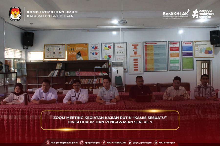 Hai #TemanPemilih, KPU Kabupaten Grobogan mengikuti Launching Zona Informasi Terintegrasi KPU Provinsi Jawa Tengah, bertempat di Aula Kantor KPU Kabupaten Grobogan secara daring, Selasa (1/7/2025). Kegiatan diawali sambutan oleh Ketua KPU Provinsi Jawa Tengah, Handi Tri Ujiono. Disampaikan bahwa kegiatan hari ini adalah ikhtiar dari tim agen perubahan KPU Provinsi Jawa Tengah dalam mengimplementasikan dan memperkuat nilai-nilai integritas dalam setiap aspek budaya kerja dan juga memastikan bahwa prinsip-prinsip zona integritas bertujuan untuk menciptakan lingkungan yang bersih, transparan, dan akuntabel serta meningkatkan kualitas pelayanan publik sebagaimana core bisnis KPU yaitu KPU Melayani. Hal ini mendasari bahwa KPU berkomitmen menciptakan pusat layanan informasi guna memastikan bahwa layanan publik yang disediakan secara gratis, efisien, efektif, ramah, modern, mudah aksesible, interaktif, dan user friendly, dan adil untuk memenuhi kebutuhan masyarakat untuk berbagai kepentingan, jelas Handi Turut memberikan apresiasi dalam kegiatan ini Muslim Aisha selaku Anggota KPU Provinsi Jawa Tengah Kadiv Hukum dan Pengawasan. Hari ini kami patut bersyukur bisa melaunching satu inovasi baru, satu gagasan baru mengenai banyaknya layanan publik yang terintegrasi jadi satu yang kita sebut sebagai Zona Informasi Terintegrasi. Prinsipnya sederhana, kami ingin lebih mendekatkan diri kepada masyarakat, terutama kebutuhan-kebutuhan layanan itu. Mungkin dari zona integrasi dan informasi ini semua yang ingin diketahui oleh masyarakat bahkan untuk kebutuhan riset sekalipun itu bisa dimanfaatkan di Zona Informasi Terintegrasi, ungkap Muslim. Kegiatan dilanjutkan dengan penyematan kaos secara simbolis yang merupakan lambang dari Zona Informasi Terintegrasi yang kemudian dilanjutkan arahan dan pembukaan oleh Anggota KPU RI, Iffa Rosita. Dalam arahannya disampaikan 6 area perubahan yang harus dilakukan KPU dalam membangun zona integritas yang meliputi manajemen perubahan, penataan tata laksana, penataan sistem manajemen sumber daya manusia, penguatan akuntabilitas, penguatan pengawasan, dan peningkatan kualitas pelayanan publik. Terdapat juga penyampaian materi mengenai Potret Pengawasan di Wilayah Provinsi Jawa Tengah Tahun 2024-2025 di penghujung acara oleh Iffa Rosita.