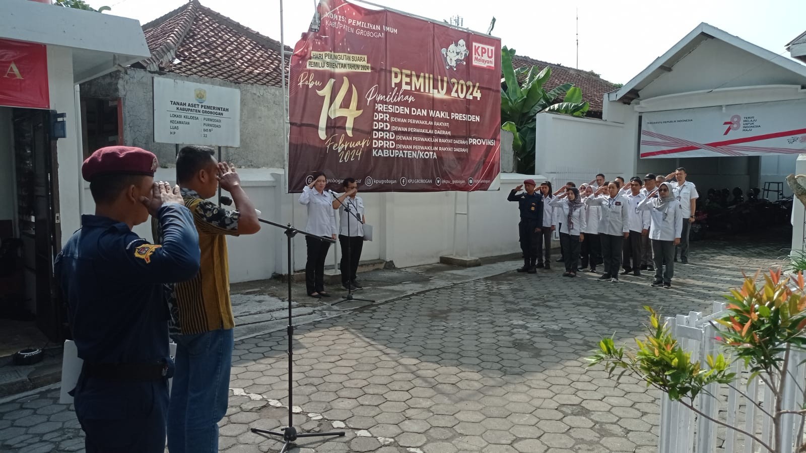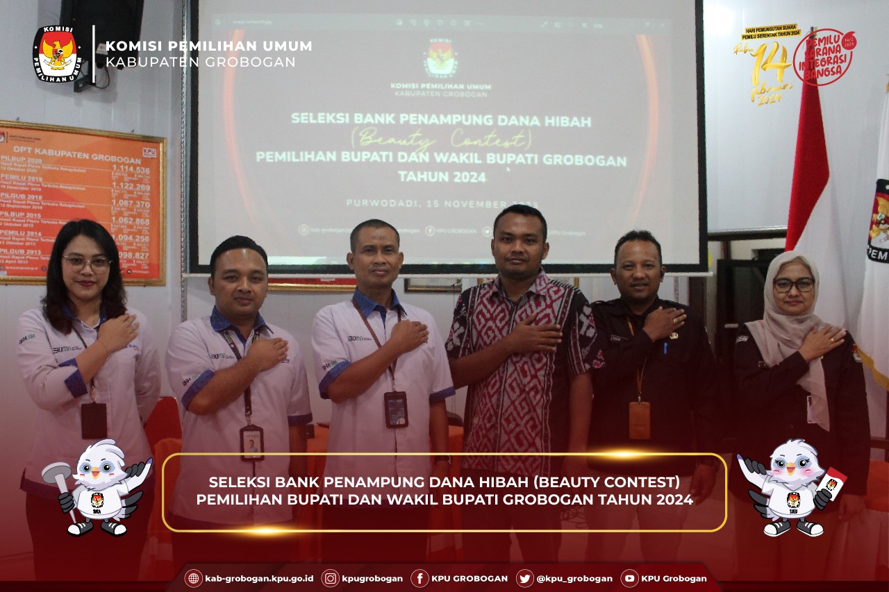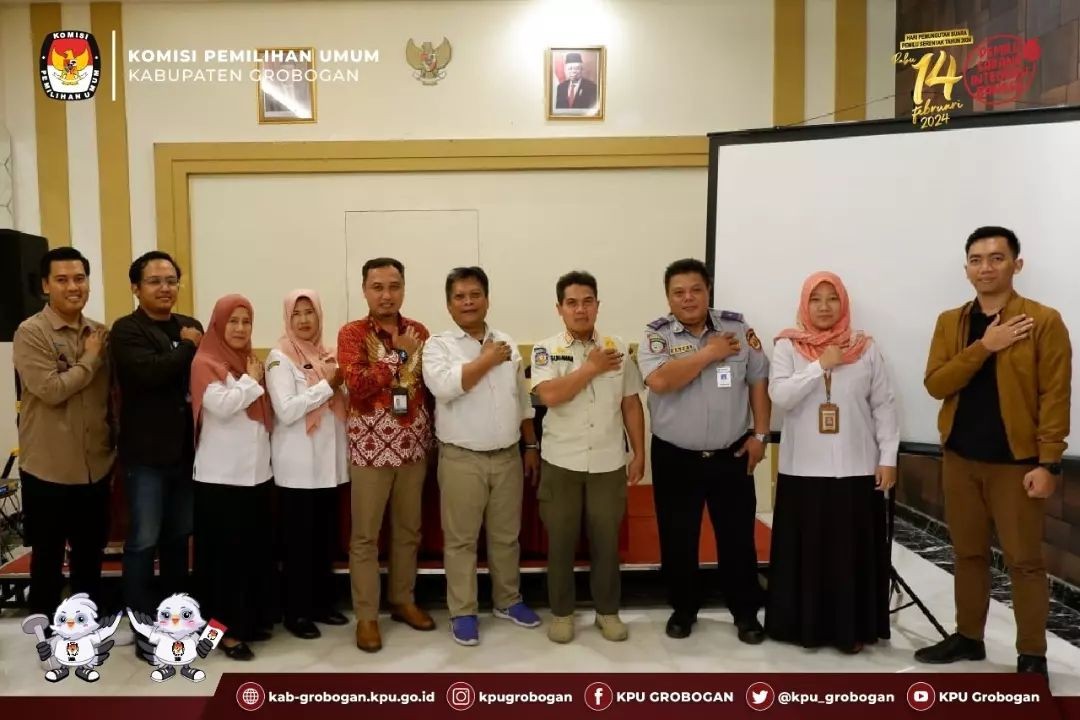 PURWODADI - Bertempat di Aula Badan Kesbangpol Kabupaten Grobogan, KPU Kabupaten Grobogan bersama dengan OPD terkait dan Bawaslu Kabupaten Grobogan menghadiri Rapat Koordinasi tentang penentuan lokasi yang diperbolehkan/dilarang untuk kampanye yang diselenggarakan oleh Badan Kesbangpol Kabupaten Grobogan, Rabu (22/11/2023). Hadir dalam kegiatan ini Bapak Ngatiman, SE selaku Anggota KPU Kabupaten Grobogan Kadiv Sosdiklih Parmas dan SDM. Acara dibuka oleh sambutan dari Kepala Badan Kesbangpol Kabupaten Grobogan Bapak Drs. Daru Wisakti, M.Si sekaligus membuka acara. Beliau menyampaikan bahwa kegiatan ini merupakan tindak lanjut atas hasil Rapat Koordinasi Desk Pemilu Kabupaten Grobogan yang telah dilaksanakan pada tanggal 21 November 2023 terkait telah diterbitkannya Keputusan KPU Kabupaten Grobogan Nomor 352 Tahun 2023 tentang Penetapan Lokasi Pemasangan Alat Peraga Kampanye dan Kampanye Rapat Umum Pemilihan Umum Tahun 2024 di Kabupaten Grobogan, serta pembahasan perihal telah terbitnya Putusan MK terkait kampanye dan pengidentifikasian fasilitas pemerintah yang diperbolehkan atau dilarang penggunaannya dalam pelaksanaan kampanye. Beliau juga menyampaikan dalam waktu yang singkat ini harapannya bisa diambil keputusan dengan regulasi yang tepat yang kemudian dapat dijadikan sebagai panduan OPD ketika ada peserta pemilu yang nantinya ingin menggunakan fasilitas pemerintah untuk pelaksanaan kampanye. Dalam kegiatan ini Bapak Ngatiman, SE memberikan penjelasan perihal Keputusan KPU Kabupaten Grobogan Nomor 352 Tahun 2023 tentang Penetapan Lokasi Pemasangan Alat Peraga Kampanye dan Kampanye Rapat Umum Pemilihan Umum Tahun 2024 di Kabupaten Grobogan yang telah diterbitkan oleh KPU Kabupaten Grobogan, serta penjelasan mengenai regulasi-regulasi yang mendasari dalam penyusunan keputusan tersebut dan instrumen-instrumen yang terkandung di dalamnya, yang diikuti sesi tanya jawab dan pengidentifikasian oleh OPD terkait fasilitas pemerintah yang diperbolehkan atau dilarang penggunaannya dalam pelaksanaan kampanye Pemilu 2024.