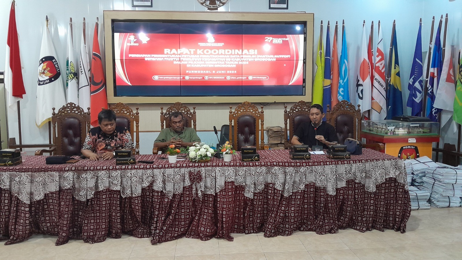TAWANGMANGU - Dalam rangka review atas pengelolaan logistik Pemilu Tahun 2024 pada hari Selasa hingga Rabu tanggal 11-12 Juni 2024, KPU Kabupaten Grobogan gelar Rapat Evaluasi Tata Kelola Logistik Pemilu 2024. Kegiatan tersebut bertempat di D'Lawu Bistro & Mountain Cottage, Tawangmangu, Kabupaten Karanganyar. Pada rapat ini hadir perwakilan dari Polres Grobogan, Kodim 0717 Grobogan, Bakesbangpol Kabupaten Grobogan dan Kantor Pos Cabang Purwodadi, Grobogan sebagai tamu undangan. Kegiatan ini dibuka oleh Ketua KPU Kabupaten Grobogan Bapak gung Sutopo, S. Pi., dalam sambutannya beliau memaparkan beberapa hal yang perlu untuk dilakukan saat tahapan logistik berjalan, agar tata kelolanya dapat berjalan sesuai dengan regulasi. Acara dilanjutkan dengan diskusi bersama para tamu undangan. Dalam kesempatan ini mereka menyampaikan agar komunikasi dan koordinasi yang selama ini telah berjalan, merupakan salah satu kunci berhasilnya KPU Kabupaten Grobogan menyelesaikan pengelolaan logistik pda Pemilu tahun 2024. Para hadirin juga berharap bahwa untuk pengelolaan logistik Pilkada tahun 2024 dapat berjalan lancar, tanpa hambatan yang berarti.