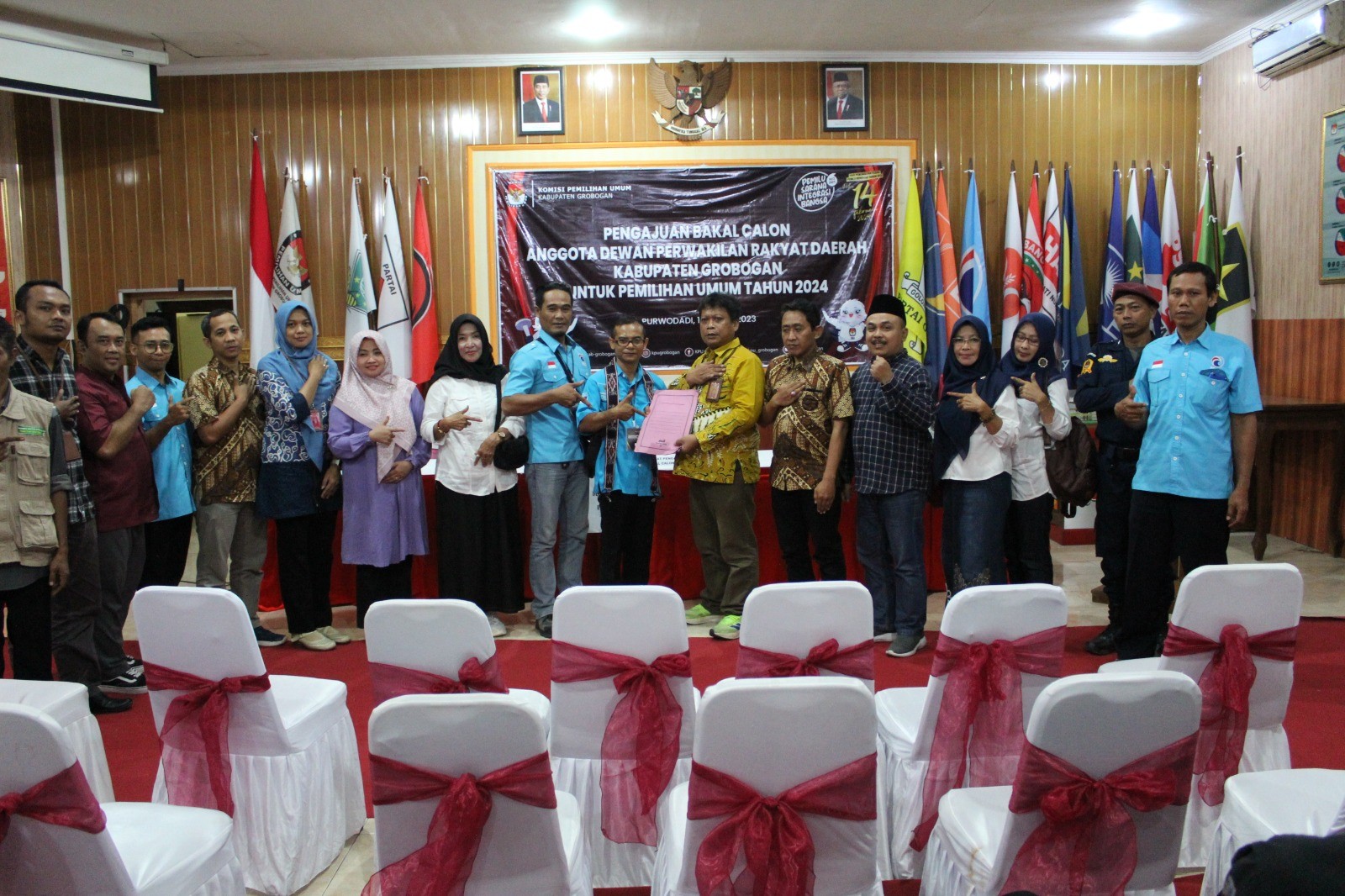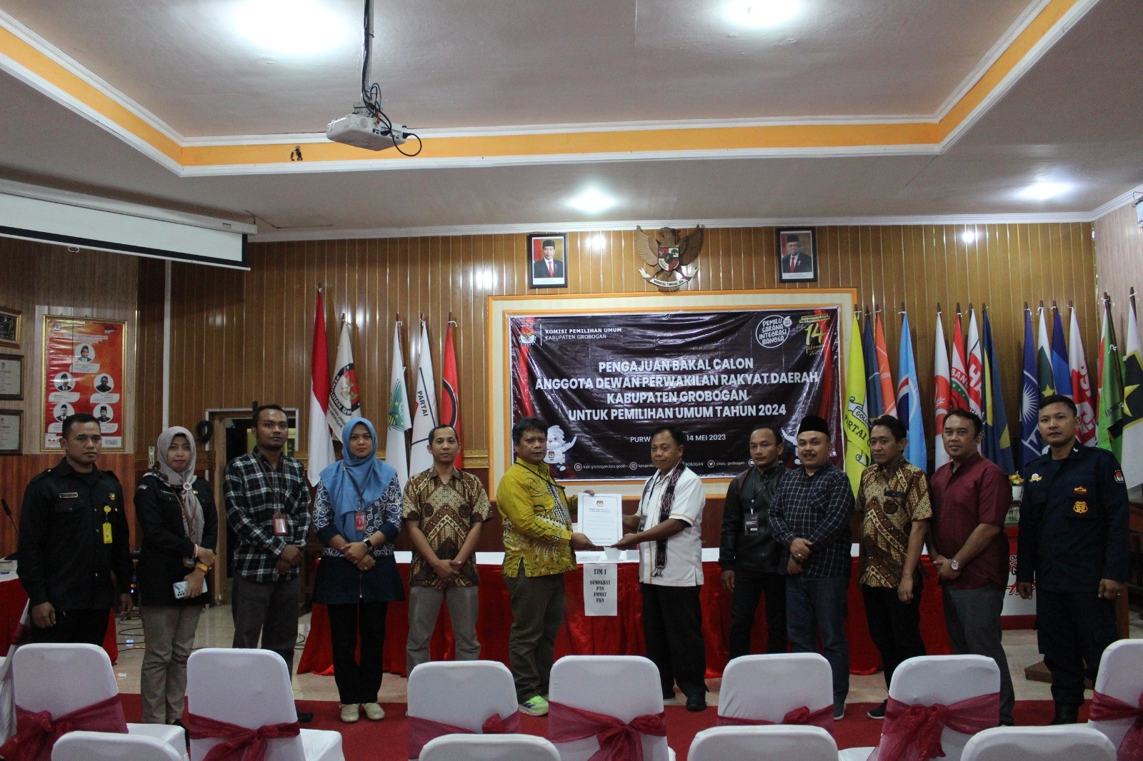 Setelah dokumen pengajuan bakal calon Anggota DPRD Kabupaten Grobogan diterima oleh Ketua KPU Kabupaten Grobogan, untuk kemudian dilakukan pemeriksaan, dan dinyatakan lengkap. Berita Acara dan Tanda Terima Penerimaan Berkas Pengajuan diserahkan oleh Agung Sutopo, kepada Ketua Partai Gelora Tingkat Kabupaten Grobogan.