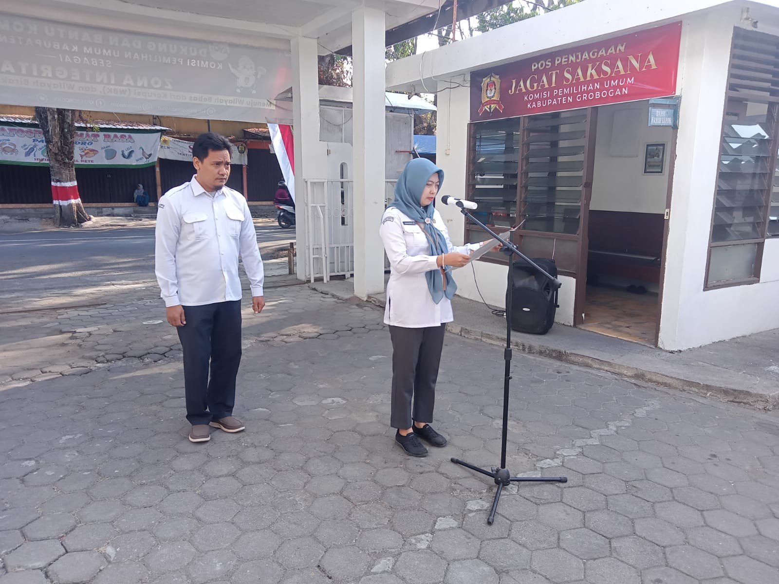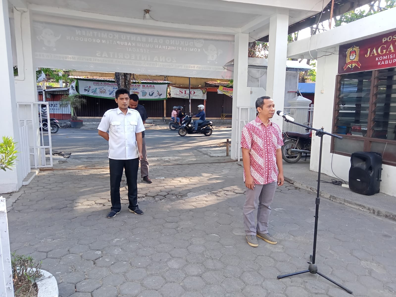 PURWODADI - Senin, 31 Juli 2023 KPU Kabupaten Grobogan kembali melaksanakan Apel Pagi, bertempat di halaman kantor KPU Kabupaten Grobogan. Bertugas sebagai pemimpin apel adalah Kasubbag Teknis Penyelenggaraan Pemilu, Partisipasi dan Hubungan Masyarakat KPU Kabupaten Grobogan Bapak Heri Prasetyo, S. Sos. Sedangkan Anggota KPU Kabupaten Grobogan Divisi Perencanaan, Data dan Informasi Bapak Muhammad Machruz, ST mengambil tempat sebagai pembina apel.