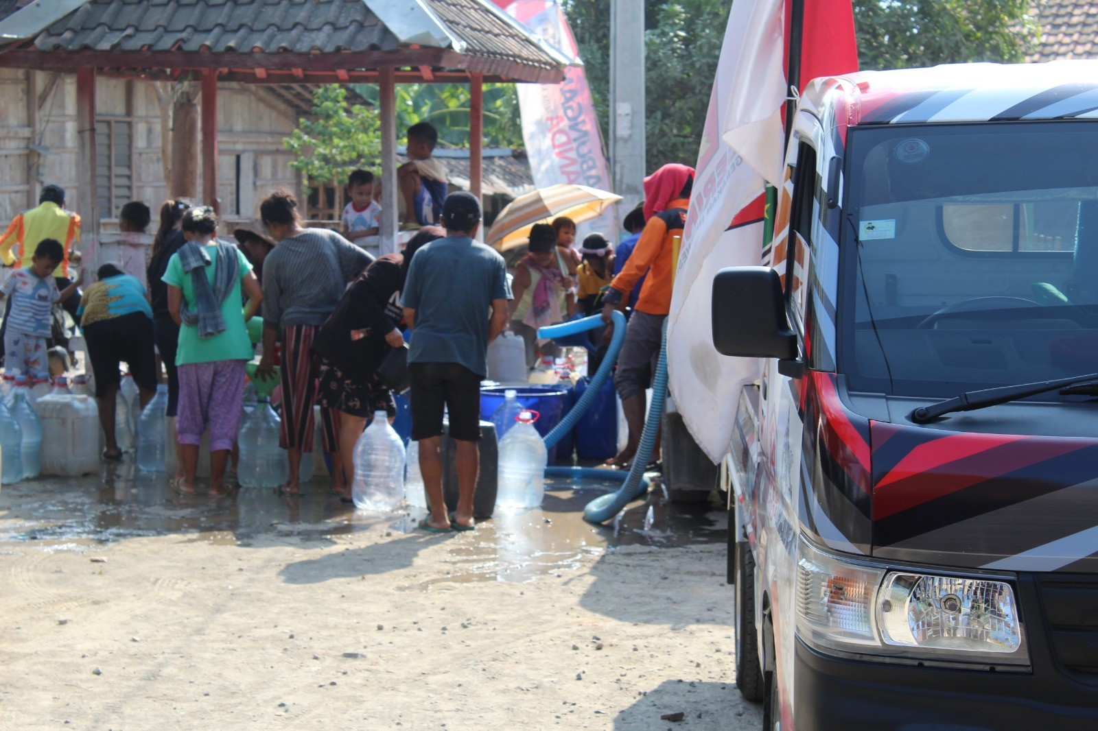 Sama halnya ketika memasuki lokus berikutnya yaitu di Desa Nambuhan Dusun Cengklik yang merupakan wilayah terdampak kekeringan. Disini dibantu oleh rekan-rekan PPK dan PPS setempat, KPU Kabupaten Grobogan melakukan sosialisasi sekaligus memberikan bantuan sosial dalam bentuk pemberian air bersih kepada masyarakat terdampak kekeringan, dan masyarakat setempat begitu antusias dan memberikan respon positif atas kegiatan ini.