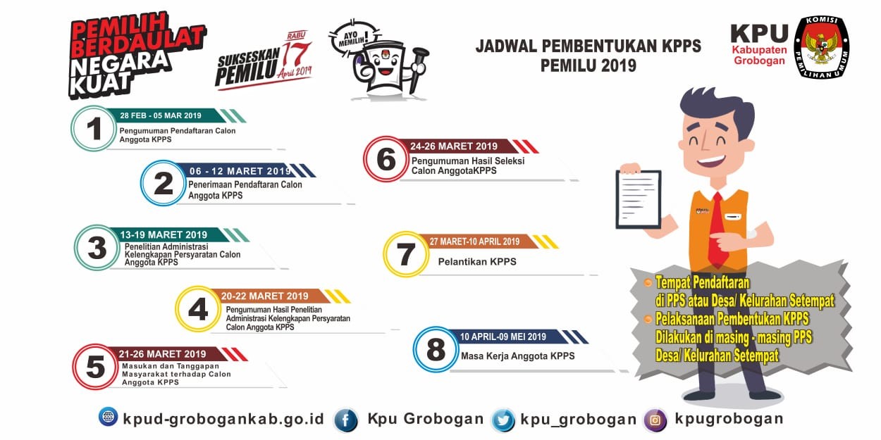 KPU Kabupaten Grobogan mengundang warga untuk mengikuti seleksi Calon Anggota Kelompok Penyelenggara Pemungutan Suara untuk Pemilihan Umum 2019.