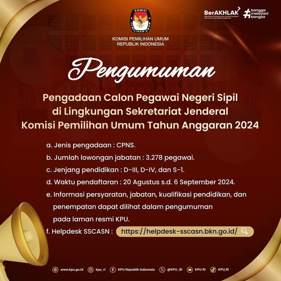 Dalam rangka pembentukan Calon Petugas Pemutakhiran Data Pemilih untuk Pemilihan Gubernur dan Wakil Gubernur, Bupati dan Wakil Bupati, dan Wali Kota dan Wakil Wali Kota Tahun 2024, Komisi Pemilihan Umum Kabupaten Grobogan melalui Panitia Pemungutan Suara mengundang Warga Negara Indonesia yang memenuhi kualifikasi untuk mendaftarkan diri menjadi Pantarlih dengan ketentuan sebagai berikut: