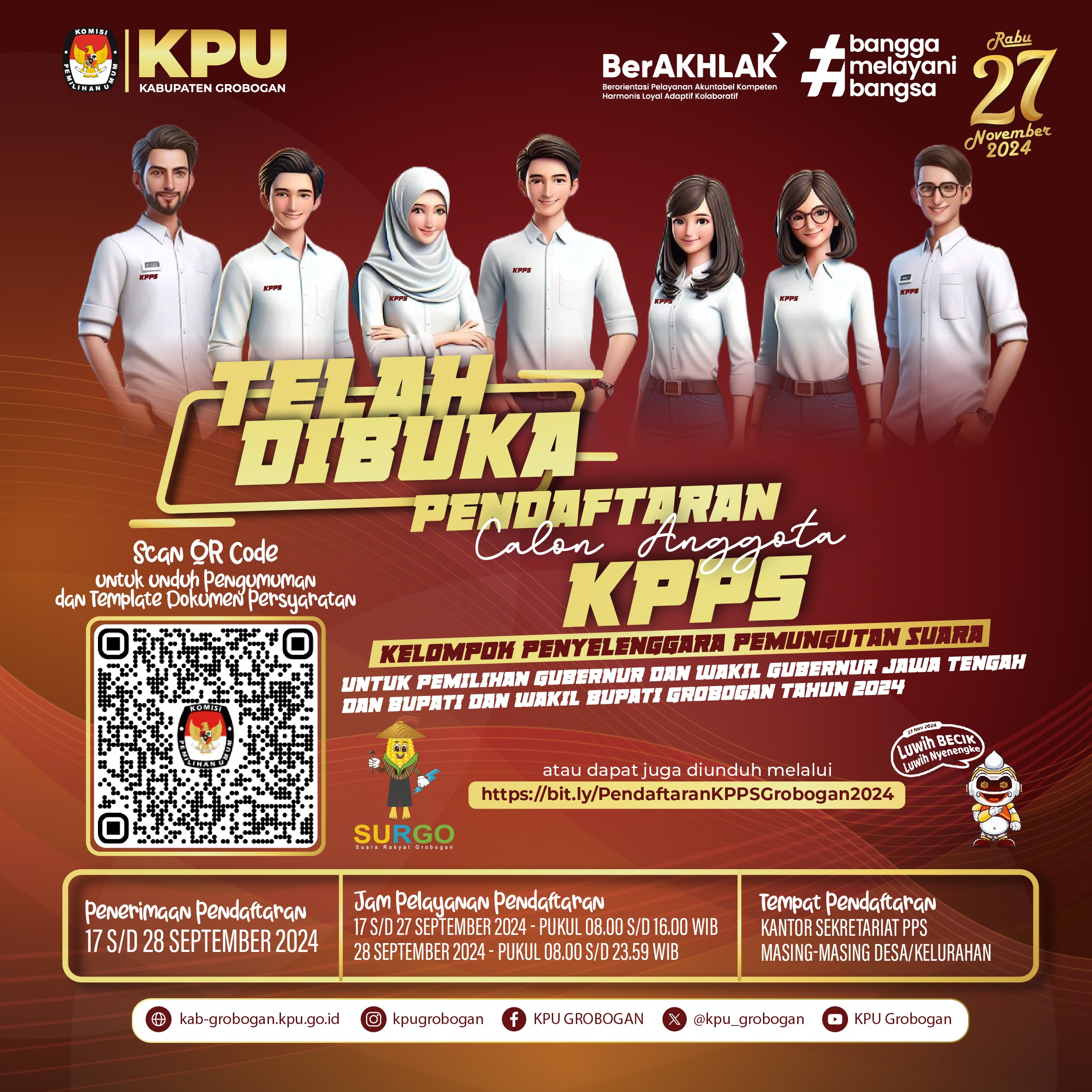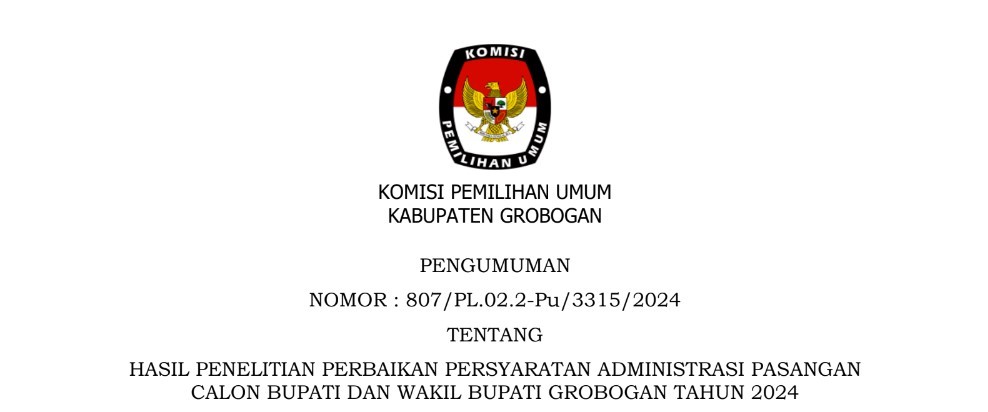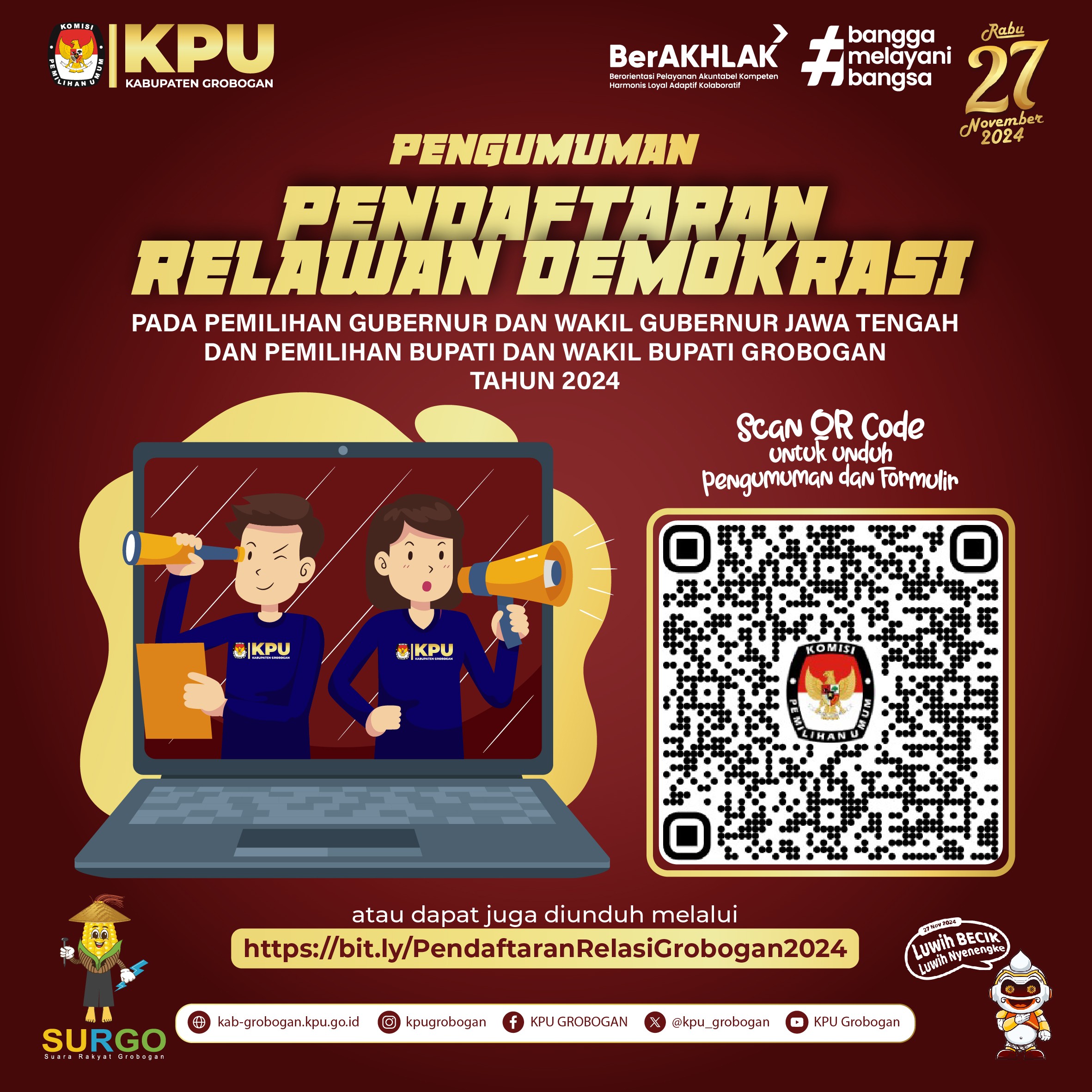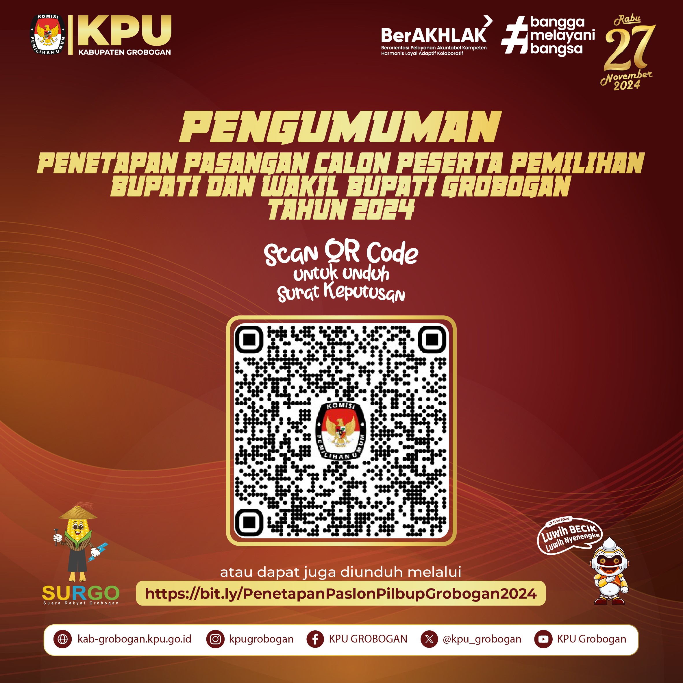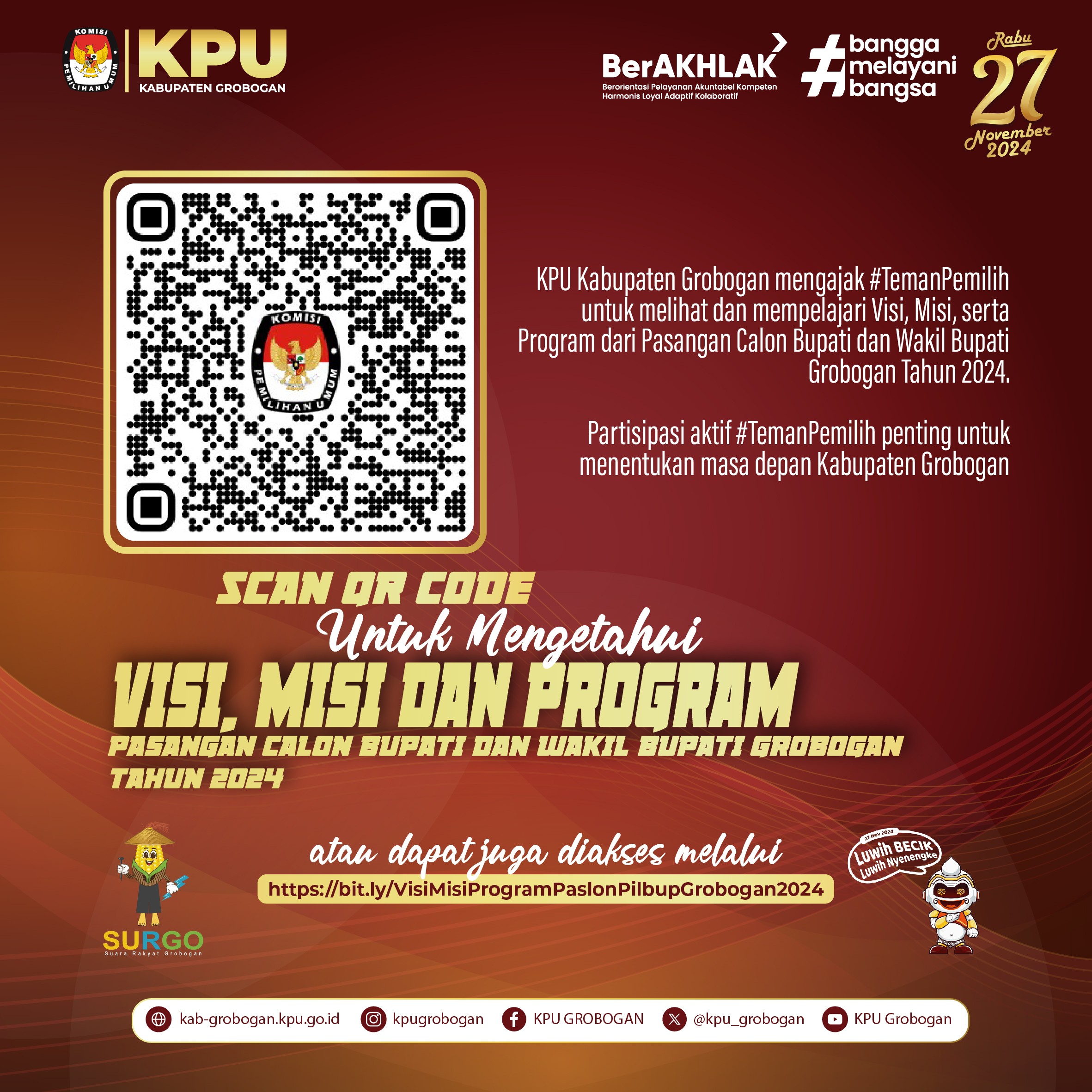 Hai #temanpemilih , KPU Kabupaten Grobogan mengajak #temanpemilih untuk melihat dan mempelajari Visi, Misi dan Program dari Pasangan Calon Bupati dan Wakil Bupati Grobogan Tahun 2024. Partisipasi aktif #temanpemilih menentukan masa depan Kabupaten Grobogan.