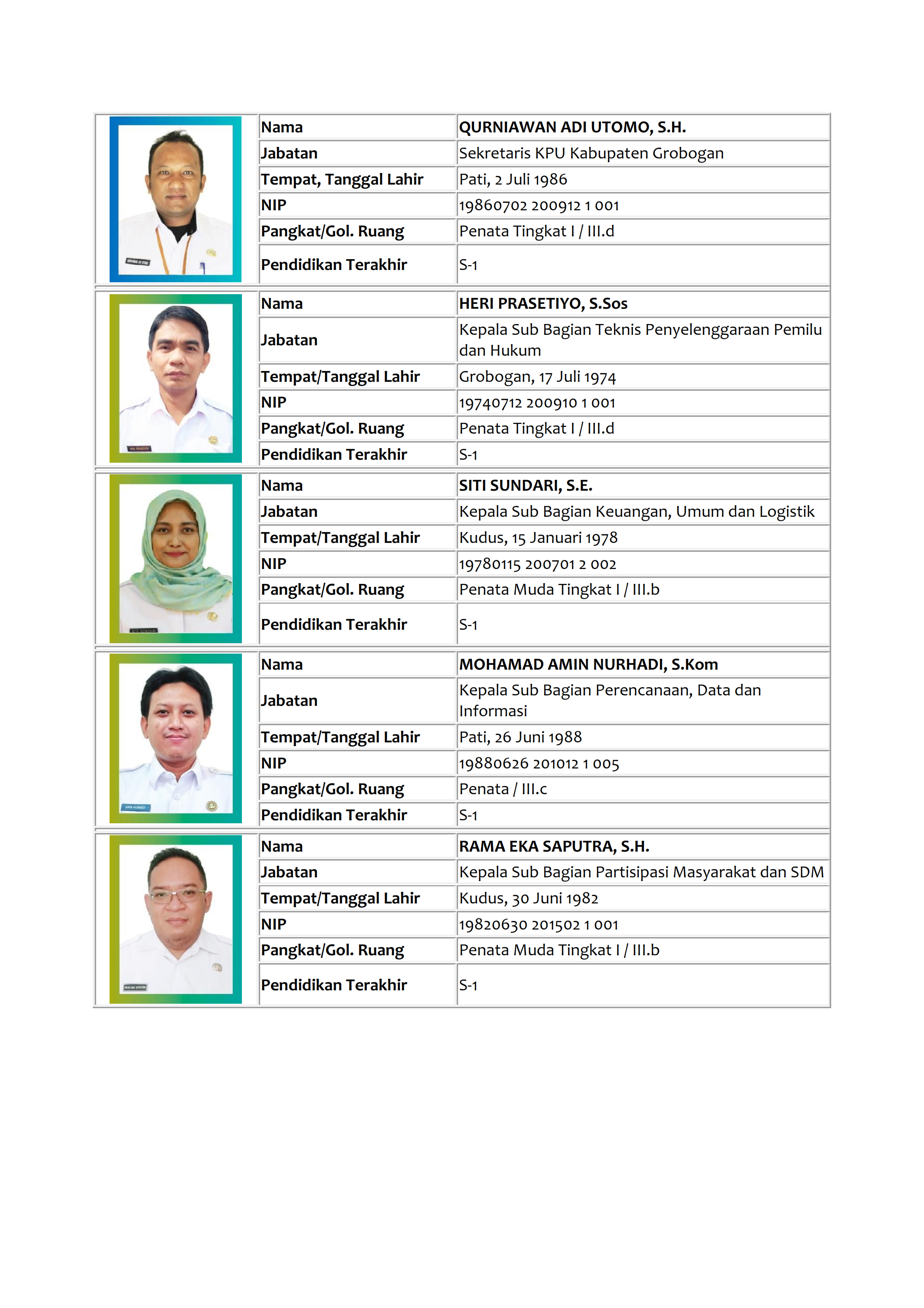 Profil Pejabat Struktural Sekretariat KPU Kab. Grobogan